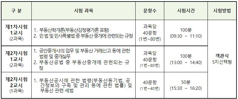 공인중개사 응시자격, 시험과목