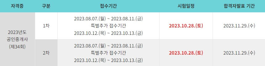 공인중개사 시험일정
