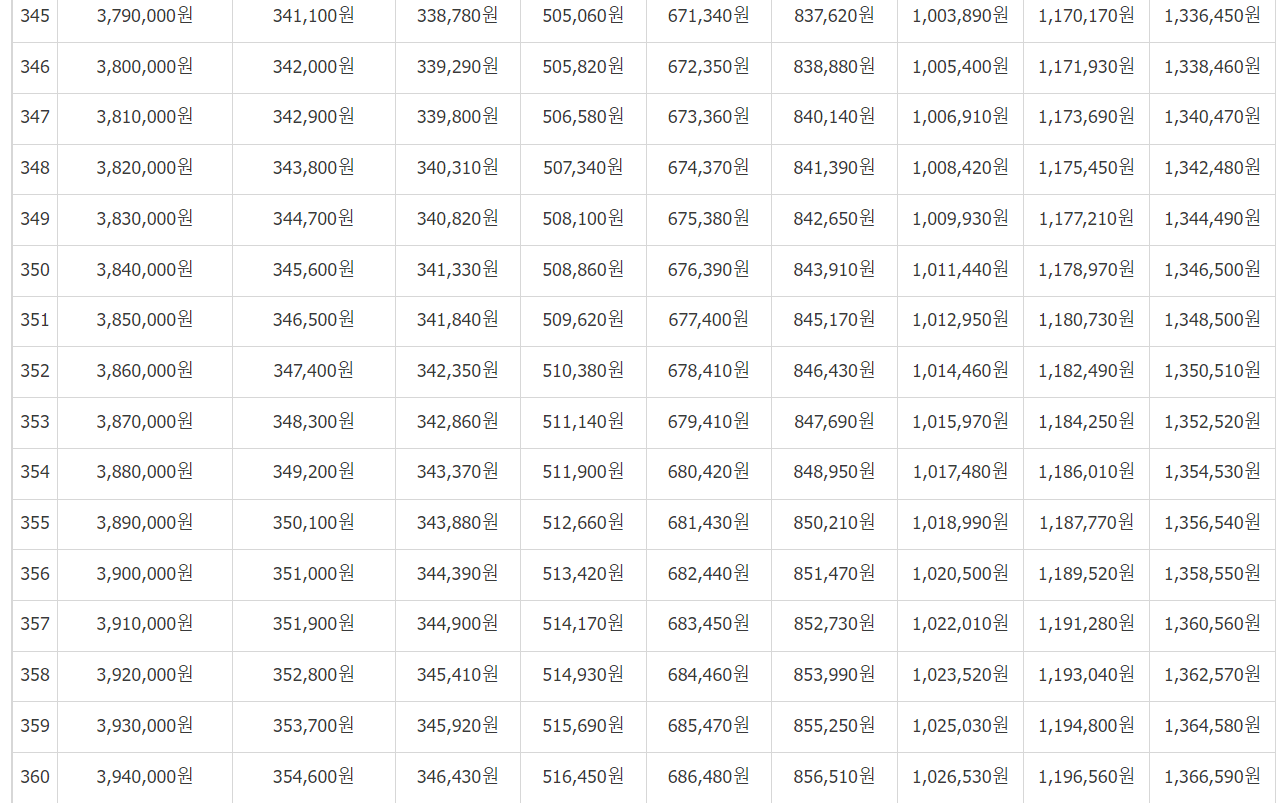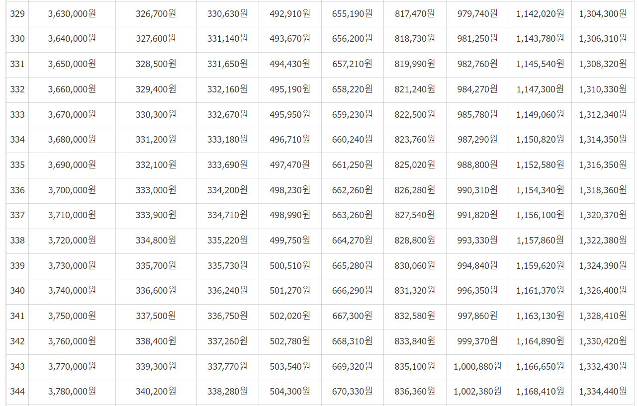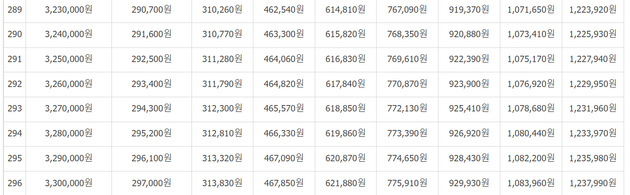 1. 본인의 월소득액과 월납부보험료를 기준으로 하여 아래 표를 보시고 예상수령액을 알 수 있습니다.
