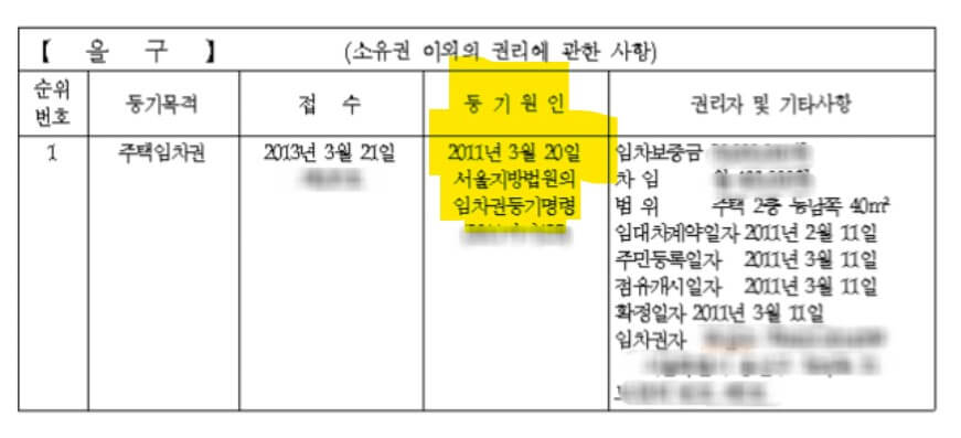일종의 건물 등기부 등본에 빨간 줄 긋는 것과 같은 효과라고 볼 수 있습니다. 이러한 경우를 보고 그 집을 계약할 세입자는 거의 없을 것입니다. 계약 만료 전에는 주인 동의를 얻어야 신청할 수 있지만, 계약만료 후에는 필요한 서류를 갖춰서 관할 법원에 가면 신청할 수 있습니다.