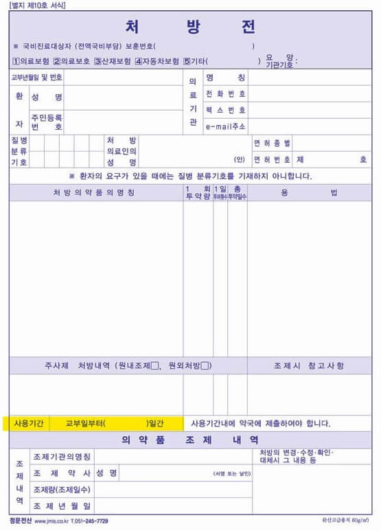 ※ 유효기간(사용기간)은 처방전의 하단에 표기되어 있으니 잘 확인하시기 바랍니다.